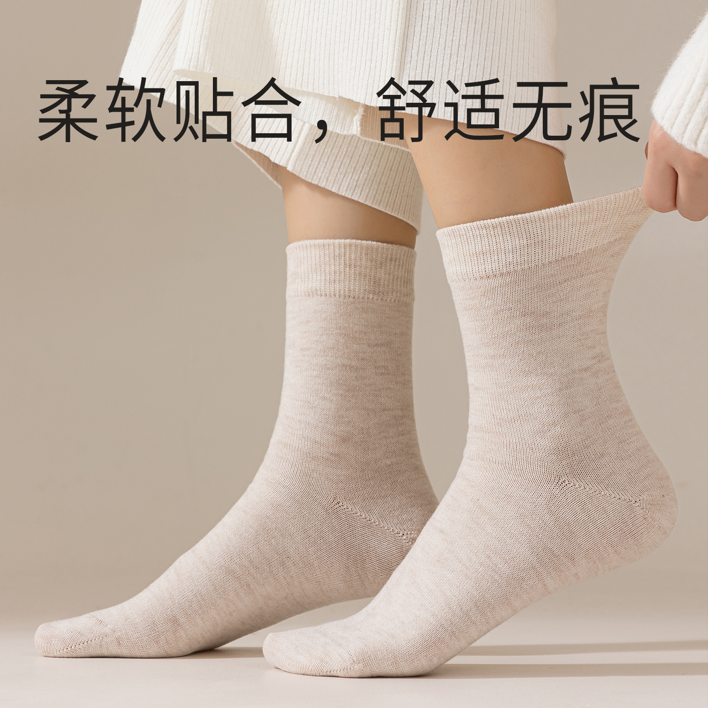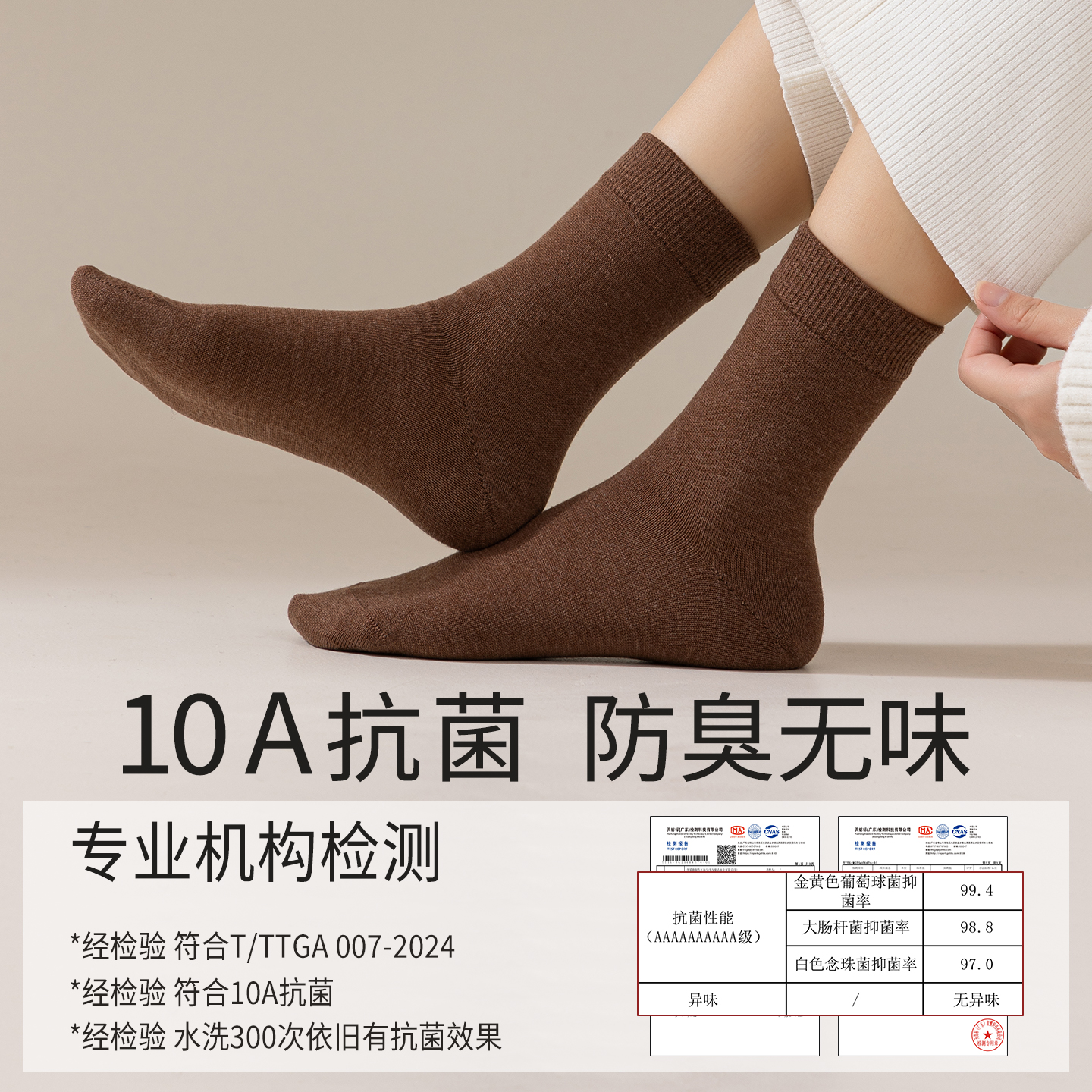 袜子女中筒袜秋冬款 10A抗菌防臭羊毛混纺加绒加厚柔软无骨长筒袜