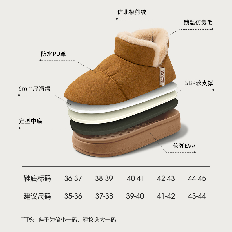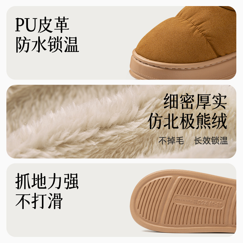 女居家用室内加绒保暖雪地靴男厚底防水棉鞋 秋冬季 高帮包跟棉拖鞋