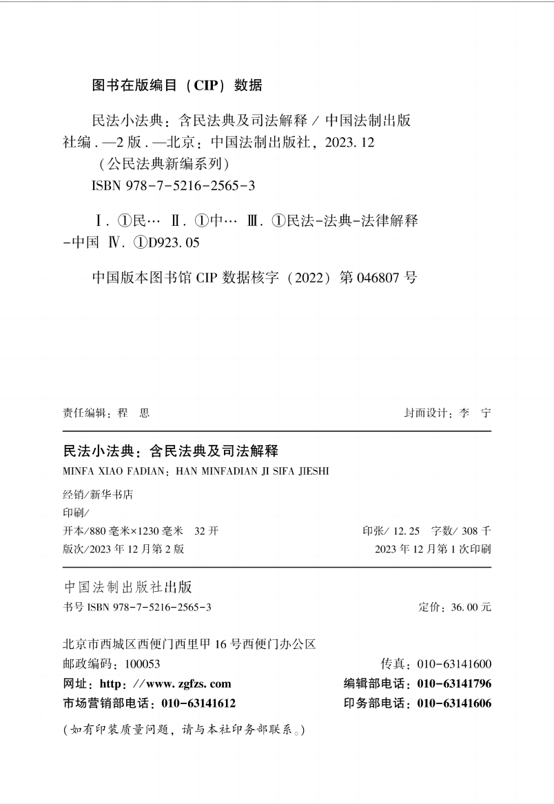 2024新版 中国法制出版 民法小法典 第二版 社9787521625653 含民法典及司法解释 正版