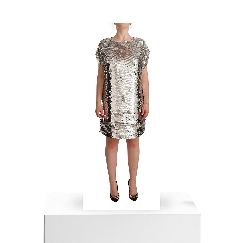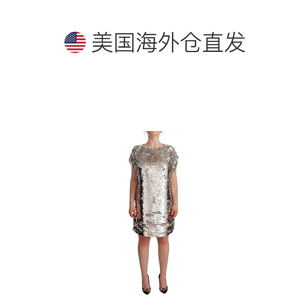 MSGM 银色 亮片涤纶短袖 连衣裙 美国奥莱直发 直筒迷你女式 自营