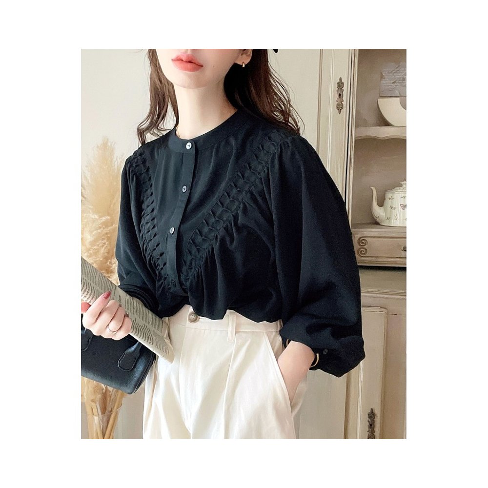 巴恩风格 通勤复古灯笼袖 子长袖 女2025秋季 宽松纯棉上衣 衬衫 KEIKO