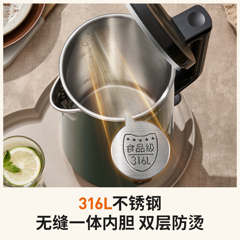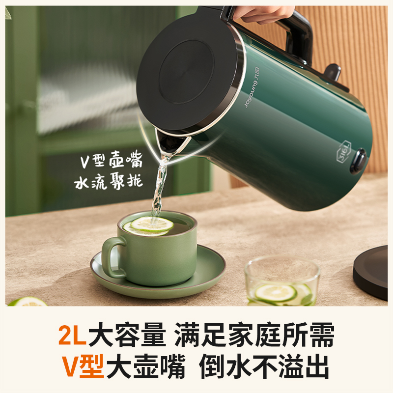 九阳2L电热水壶家用保温烧水壶自动断电开水煲恒温不锈钢电水壶
