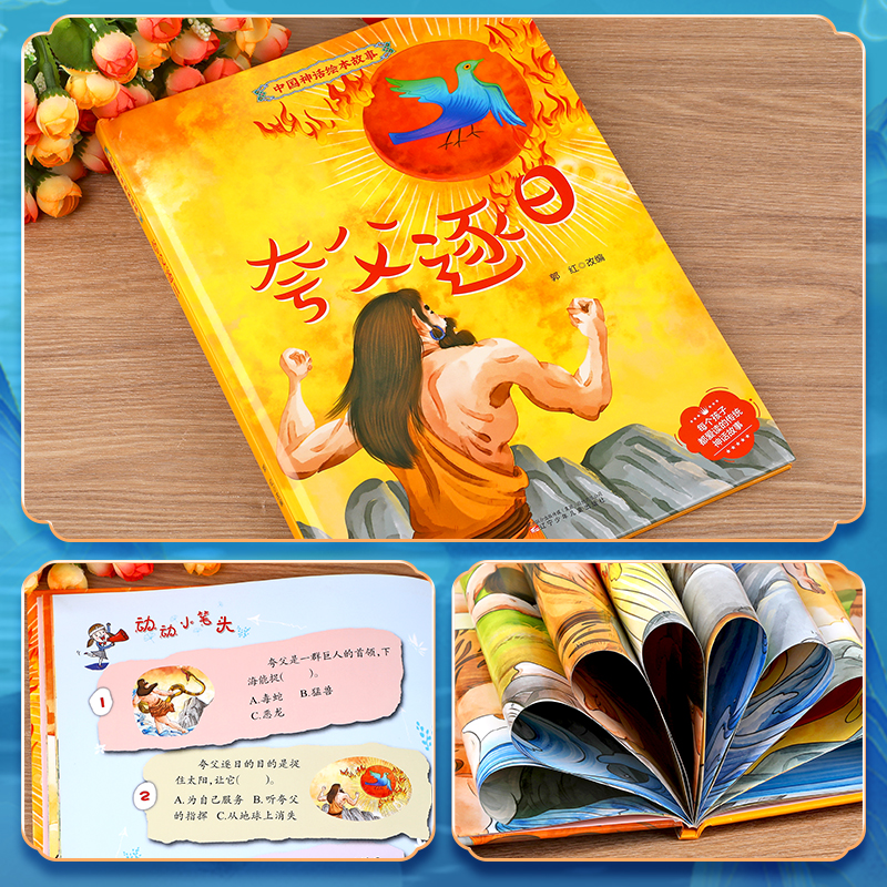 中国古代神话故事儿童绘本3 夸父逐日绘本 6岁硬壳幼儿园阅读书籍 一二年级课外书适合4 童话书夸父追日GH 6岁以上宝宝看 精装