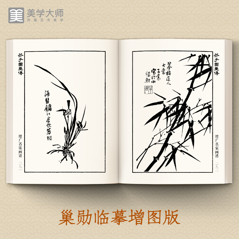 芥子园画传兰竹梅菊谱王概著巢勋临摹增图黑白完整版 介子园工笔国画入门技法草虫翎毛人物山水画谱实用教材书籍