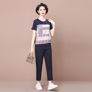 2025新款 年轻妈妈洋气中年女运动套装 减龄夏装 休闲短袖 中老年大码
