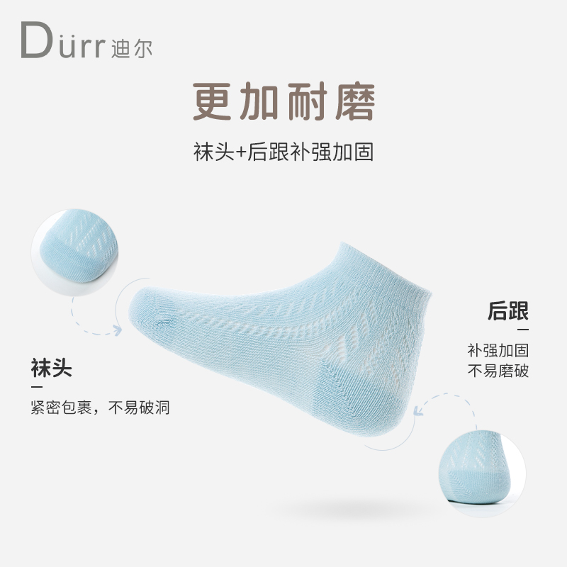 迪尔durr夏季 儿童机能袜 宝宝袜子透气网眼袜柔软亲肤婴儿袜子薄款