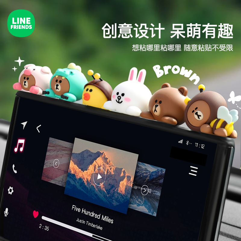 车载车内饰品汽车摆件中控台显示屏可爱布朗熊解压公仔屏幕装 饰品
