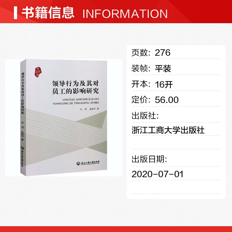 励志 社 朱玥 浙江工商大学出版 图书籍 新华书店正版 领导学经管 著 金杨华 影响研究 领导行为及其对员工