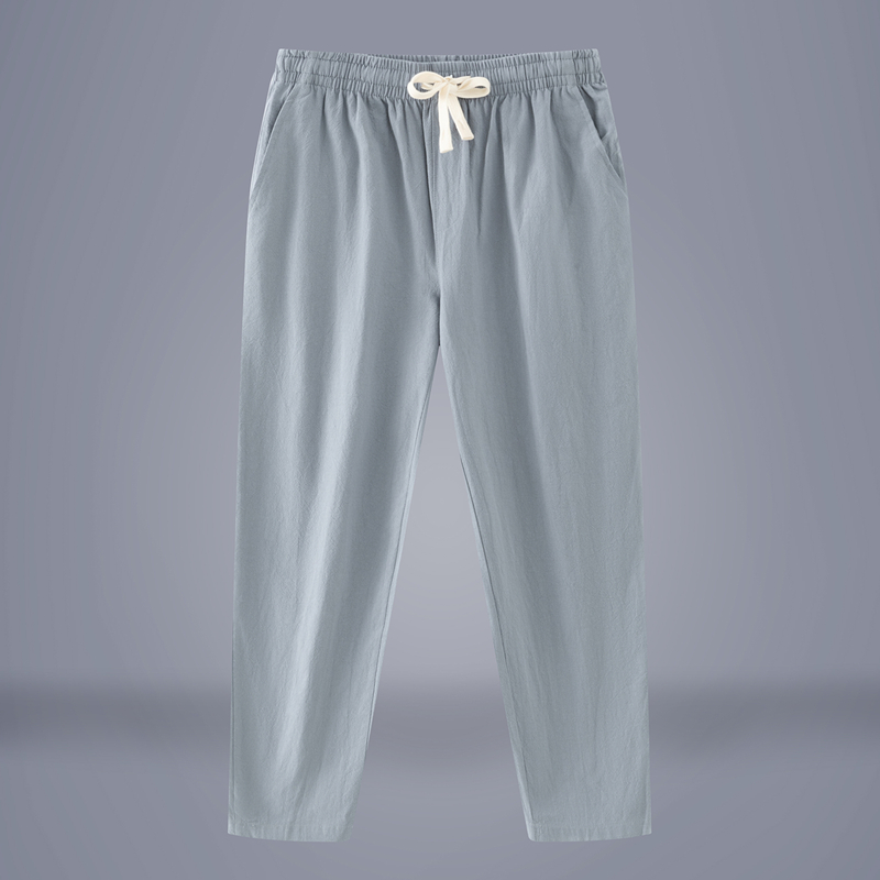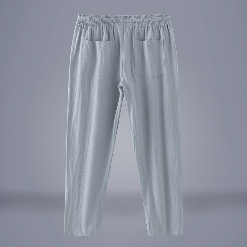日系直筒宽松冰丝纯麻九分裤 亚麻裤 纯色百搭全麻休闲裤 薄款 男夏季