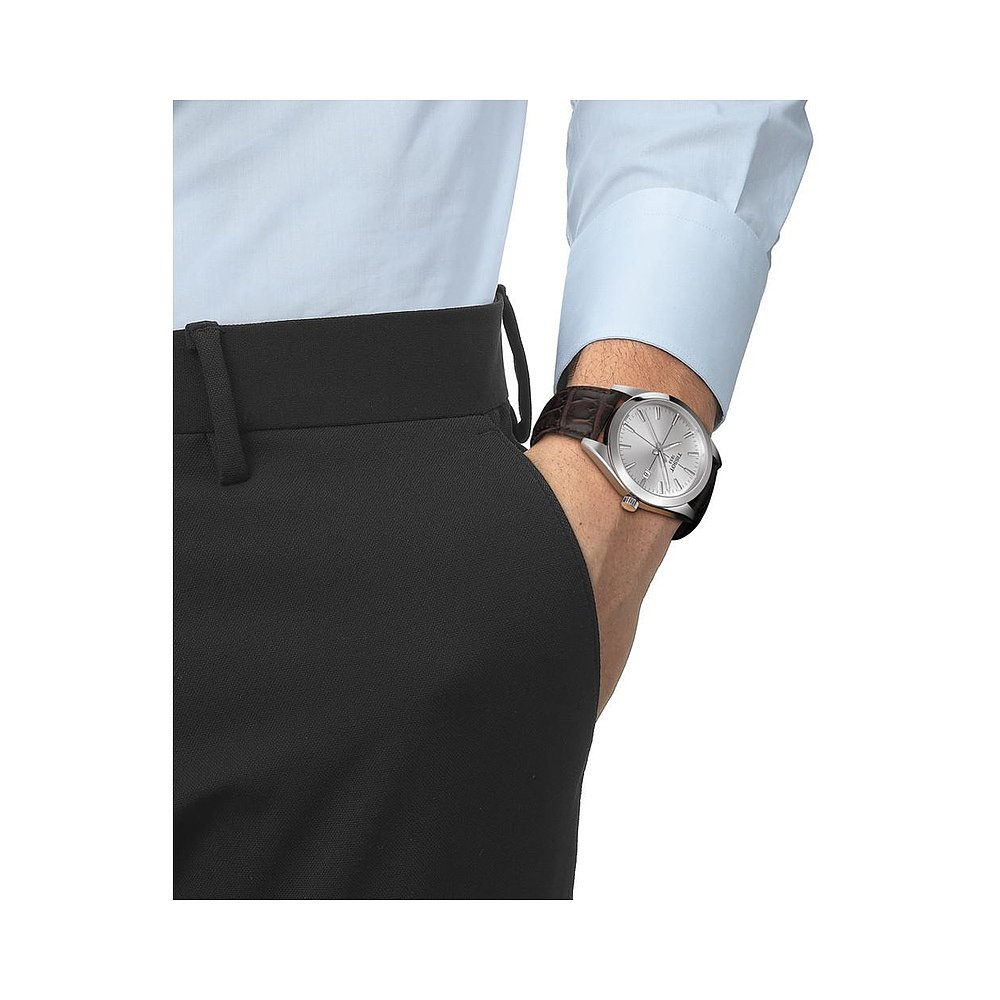 美国直邮TISSOT 休闲手表瑞士天梭表带表盘银色浮雕棕色 男士