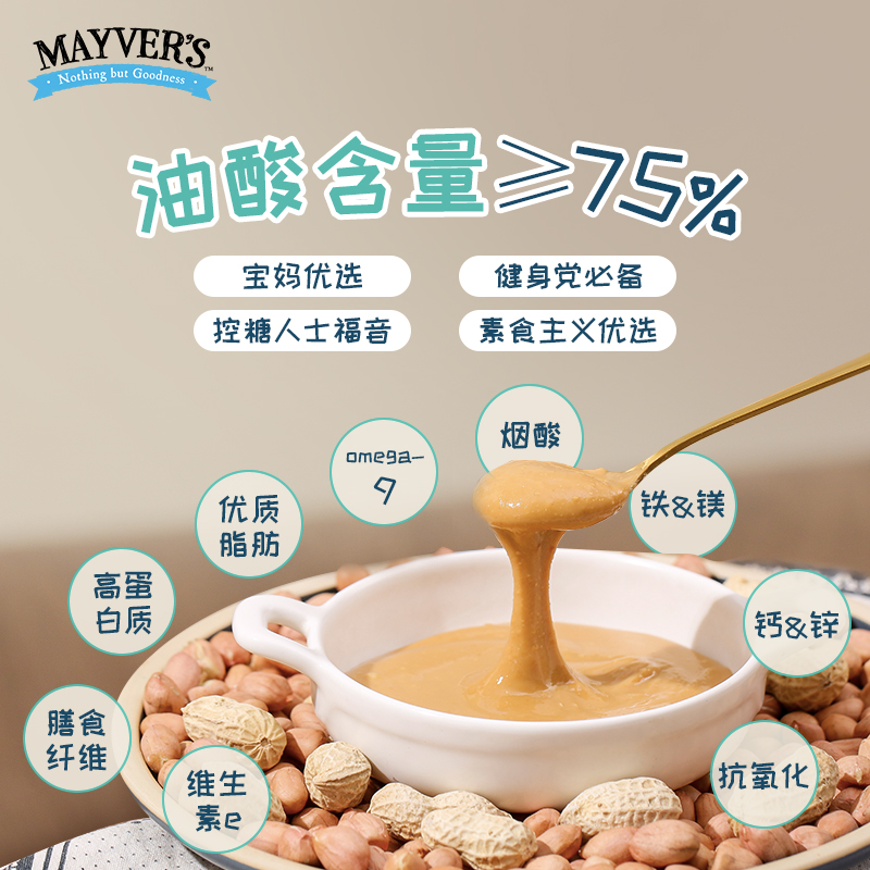 澳洲原装 进口mayvers宝宝花生酱麦富氏减脱无糖精脂0无添加盐脂肪