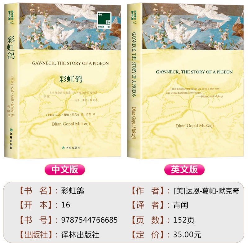 纽伯瑞儿童文学金奖小说 中文译本 中英双语版 书籍动物小说 文学作品外国小说 2册 初中小学生英语读物课外读本经典 彩虹鸽英文原版