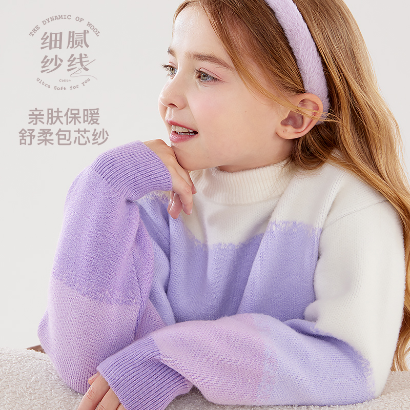 新款 ELLE圆领宽松毛衣女2025秋季 休闲简约毛针织衫 100%绵羊毛