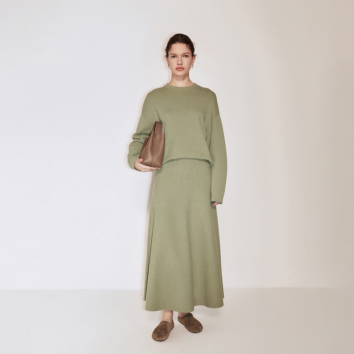 纯色气质静奢高级秋冬新品 OCHIRLY欧时力 弹力a字半身裙女中长款