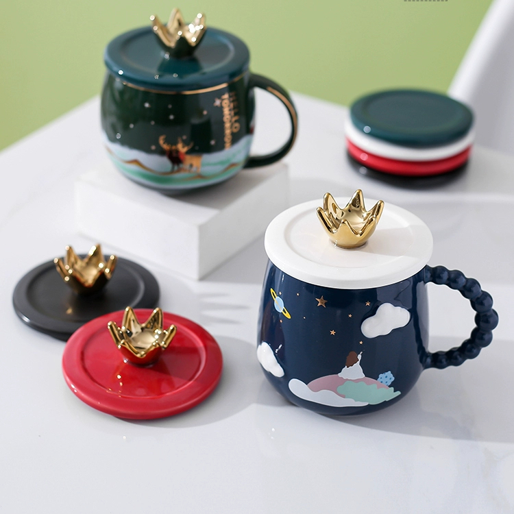 创意全盖陶瓷杯盖无勺口不带孔马克杯通用盖茶杯盖大号9cm水杯盖