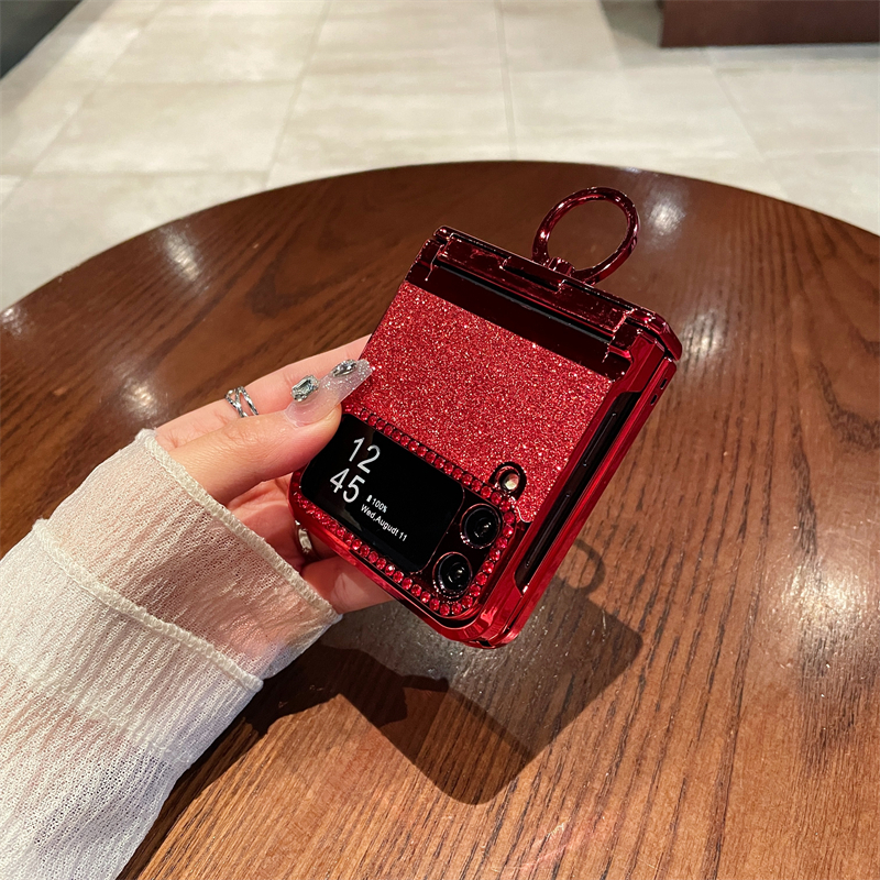 高级感zflip5闪粉水钻高端硬壳喜庆 个性 三星zflip4手机壳红色满天星zflip3新年款 中国红保护套适用Galaxy时尚