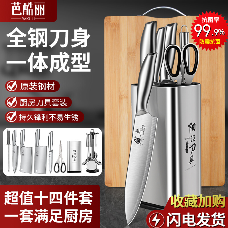 德国刀具菜刀菜板二合一厨房套装 组合厨具全套切片砍骨厨师刀家用