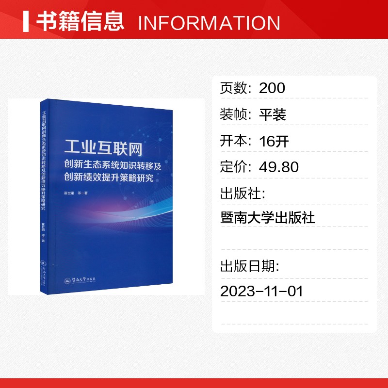 著 经济理论经管 暨南大学出版 崔世娟 社 图书籍 等 新华书店正版 工业互联网创新生态系统知识转移及创新绩效提升策略研究 励志