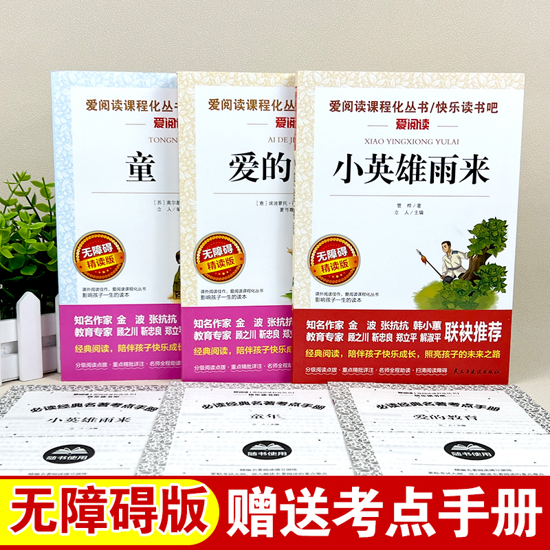 无障碍导读版 六年级上彩插本 教育 张抗抗 金波推荐 共3册 爱 套装 阅读丛书 小英雄雨来 快乐读书吧 童年