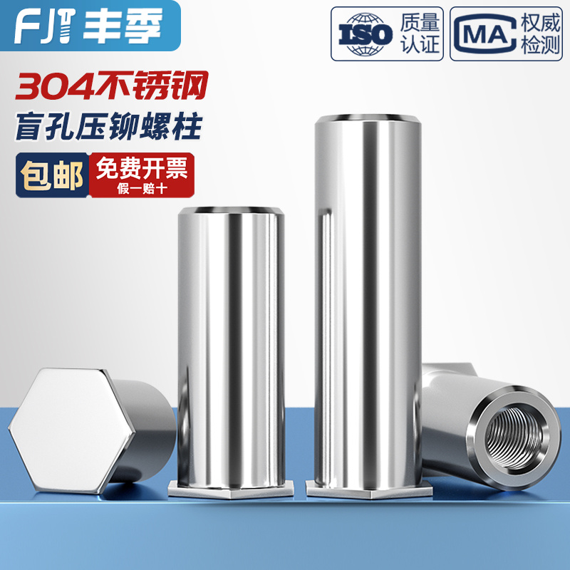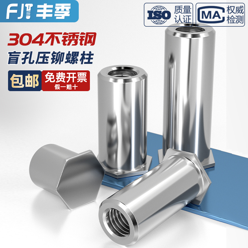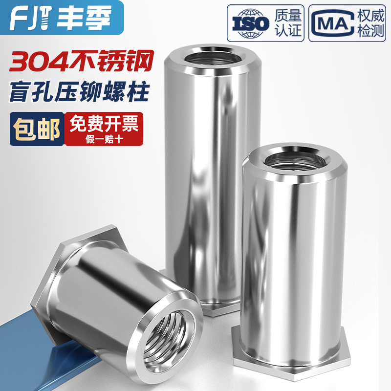 304不锈钢盲孔压铆螺柱BSOS M2M2.5M3M4M5M6压铆螺母柱件压板螺柱