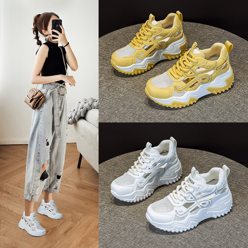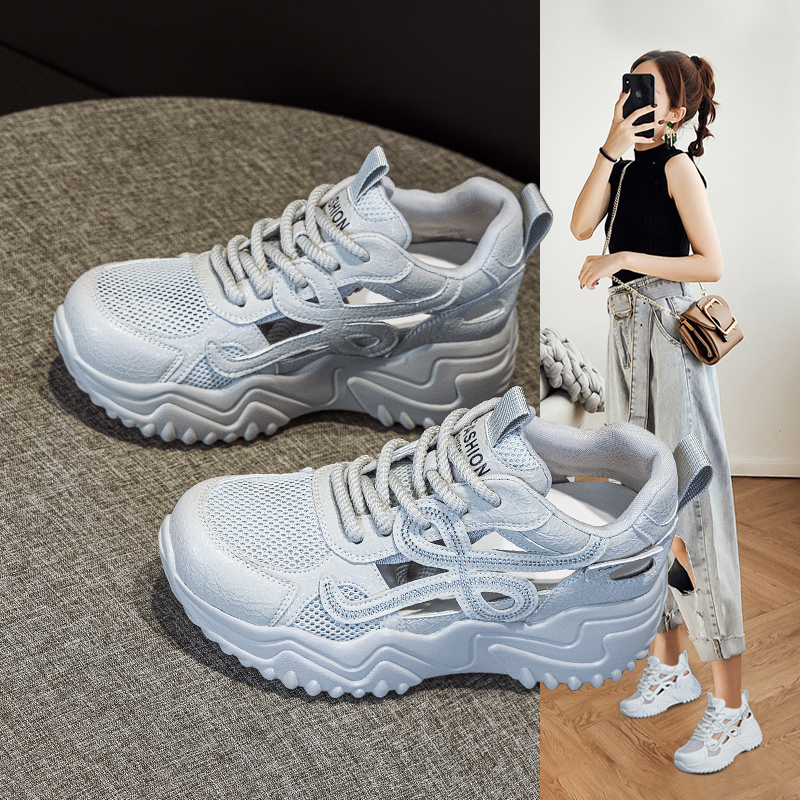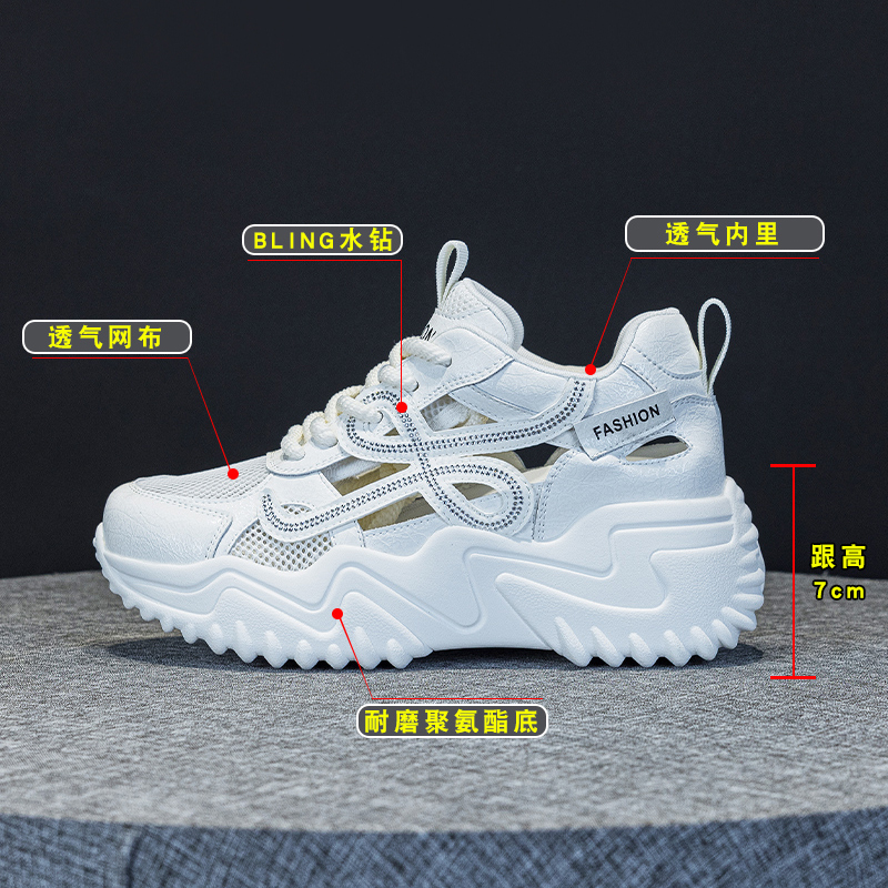 2025年超火休闲厚底内增高老爹鞋 新款 外穿 女镂空透气夏季 包头凉鞋