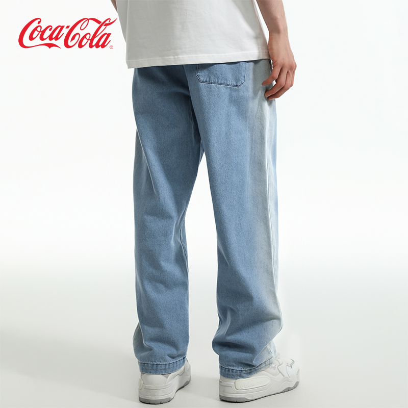 复古刺绣休闲直筒阔腿牛仔裤 可口可乐渐变做旧水洗美式 Cola Coca