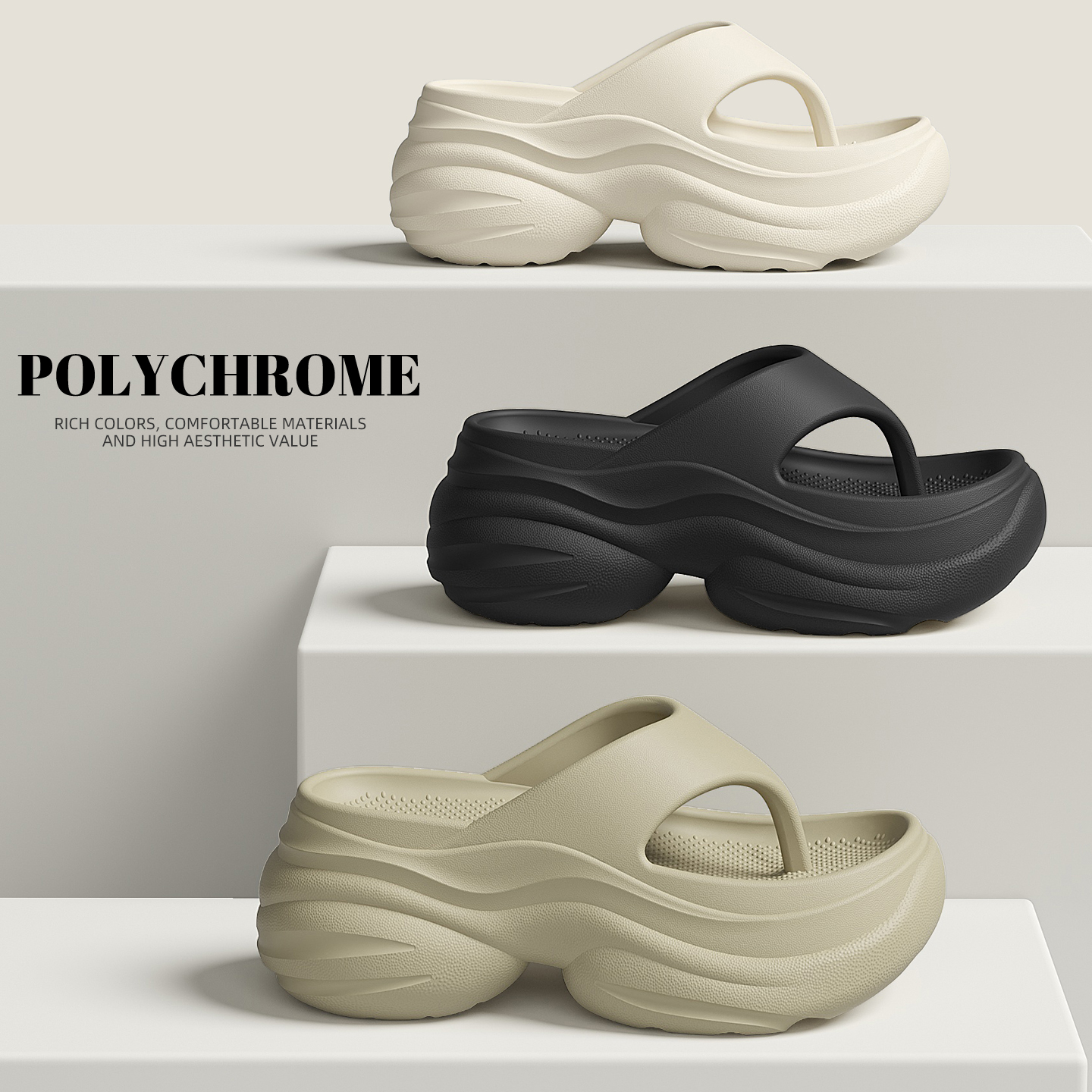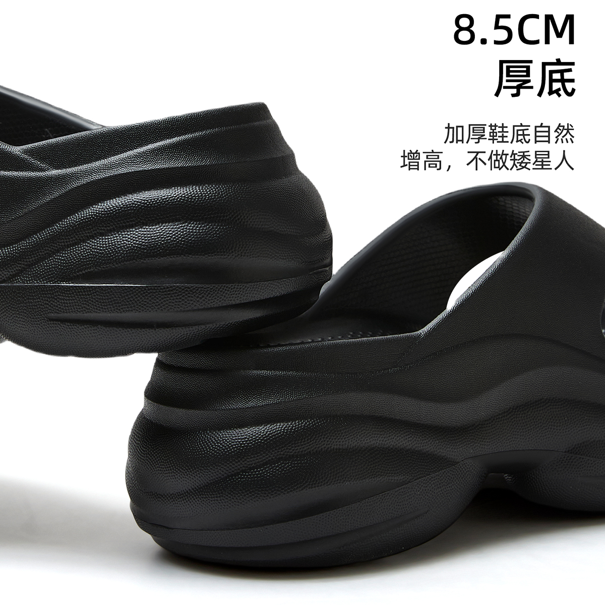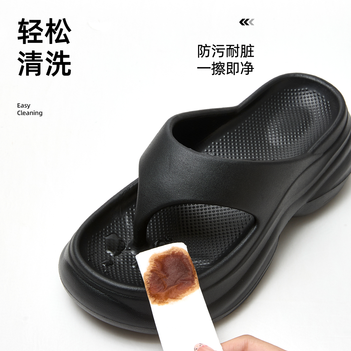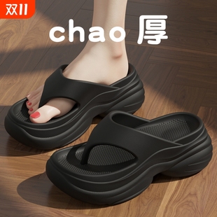 厚底人字拖女沙滩2025新款 黑色 海边外穿防滑防臭eva夹脚增高拖鞋