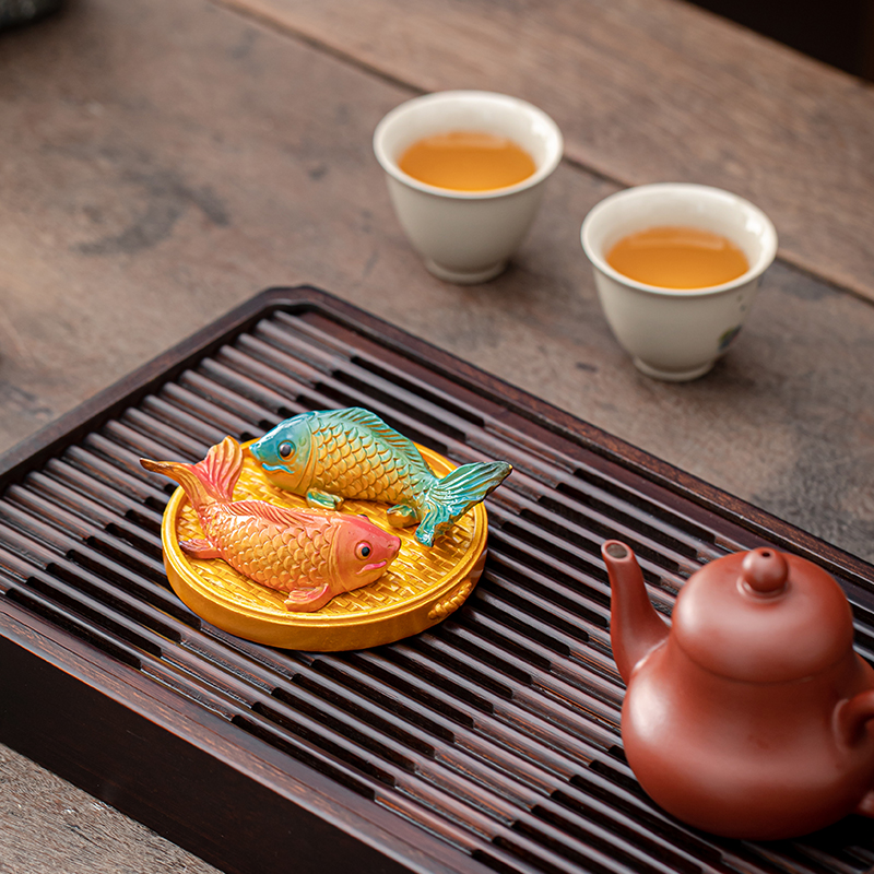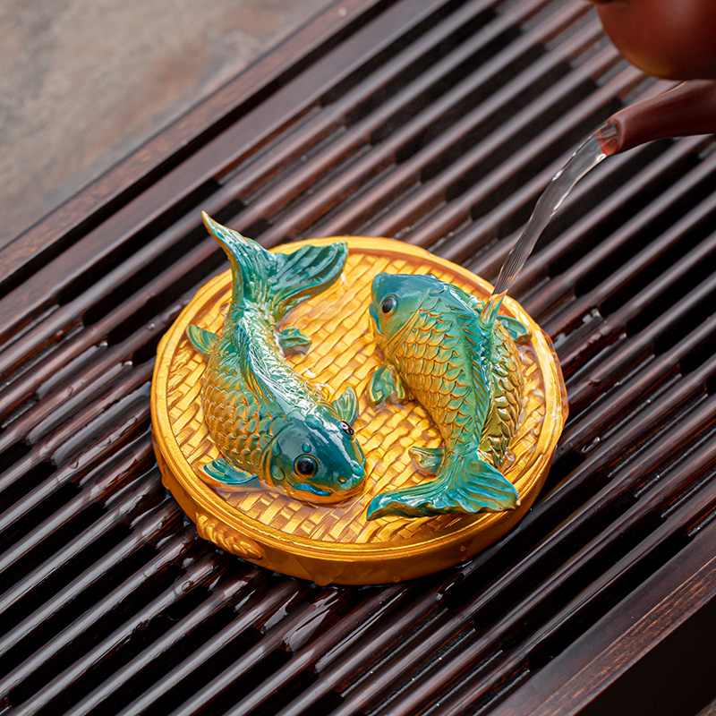 豪跃变色茶宠摆件招财锦鲤年年有鱼精品可养茶桌摆设饰品茶具配件
