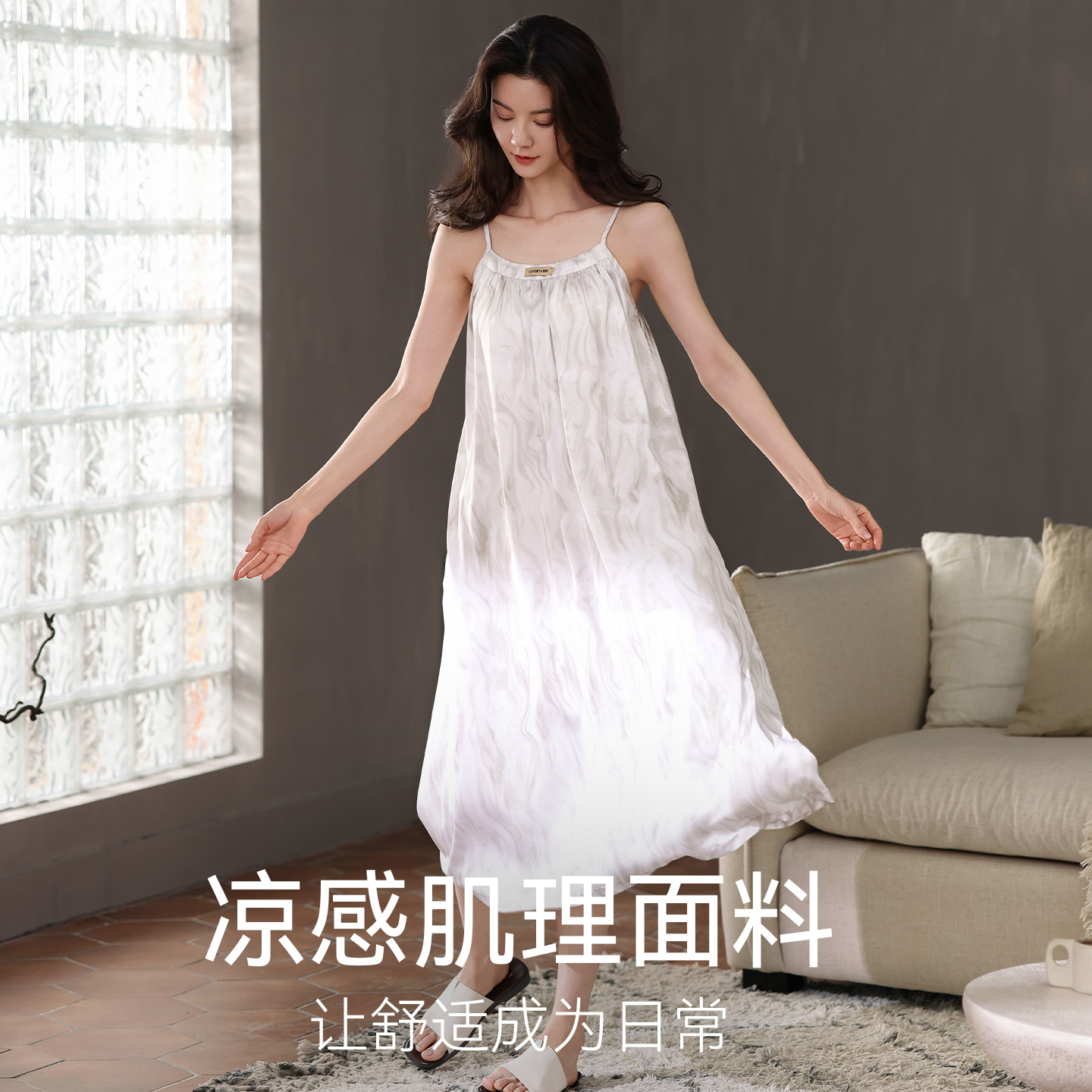 莫代尔冰丝睡裙女带胸垫夏季 休闲家居服 性感吊带裙高级凉感中长款