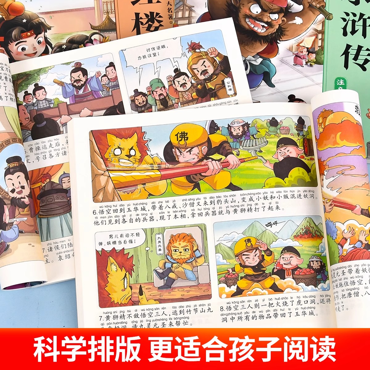 小人书原著正版 漫画版 三国演义水浒传红楼梦故事书一二年级课外阅读书籍带拼音 全套注音版 四大名著连环画西游记儿童绘本小学生版