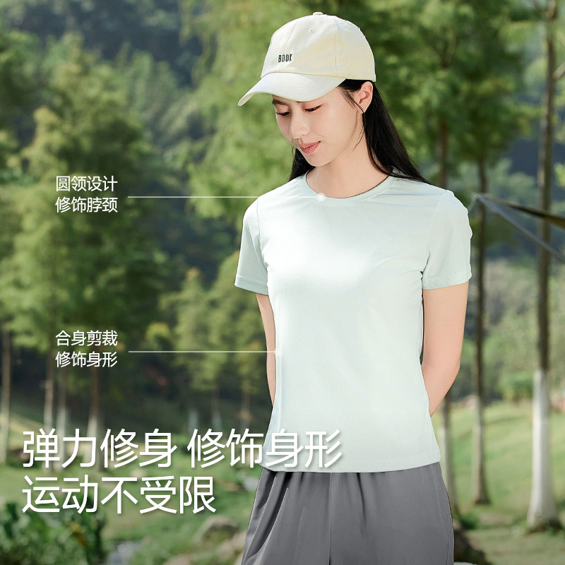 KCV真维斯紫色速干冰丝短袖 凉感透气正肩多巴胺运动上衣 t恤女新款