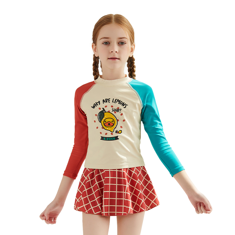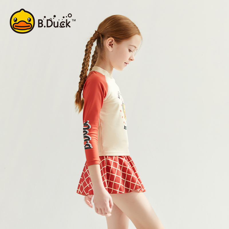 B.Duck儿童泳衣女童宝宝分体裙泳装 游泳衣 女孩海边沙滩防晒长袖