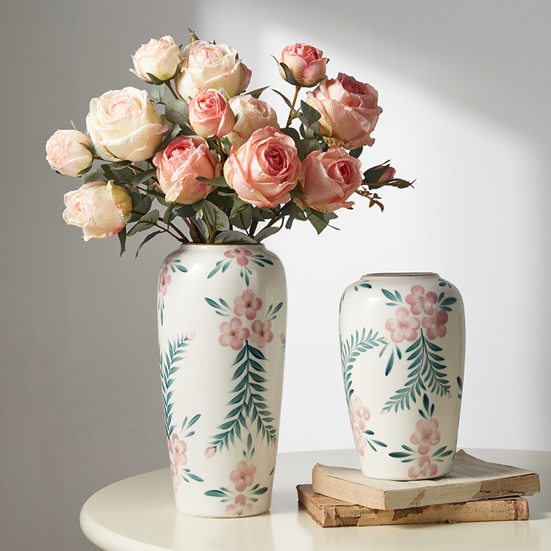 欧式 饰摆件 玫瑰插花花瓶白色简约陶瓷花器客厅餐桌干花鲜花水培装