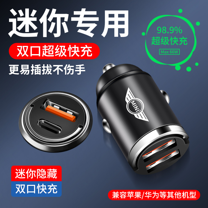 隐藏车载充电器66W 120W超级快充汽车点烟器转换插头一拖三PD快充