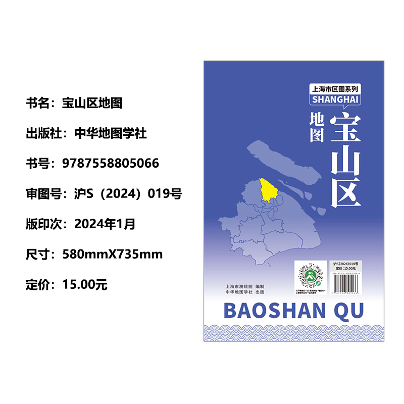 中华地图学社 地铁站景点学校医院商厦分布情况 上海市宝山区地图新版 上海分区交通旅游便民出行指南