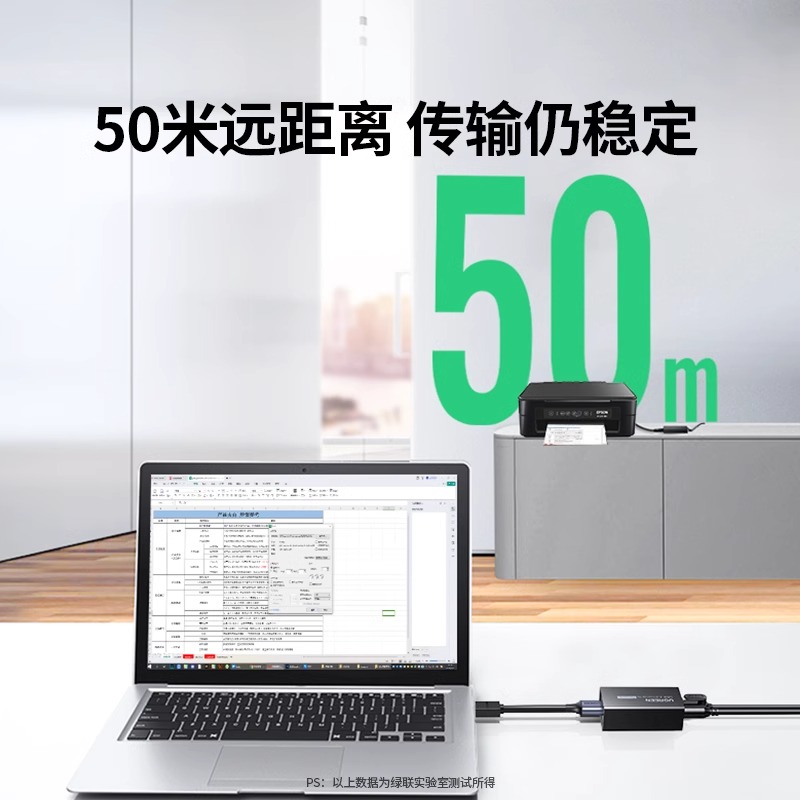 绿联usb网络延长器usb2.0网线信号放大转网络RJ45接口50米无线数据传输器鼠标键盘监控摄像头扫描枪单边供电