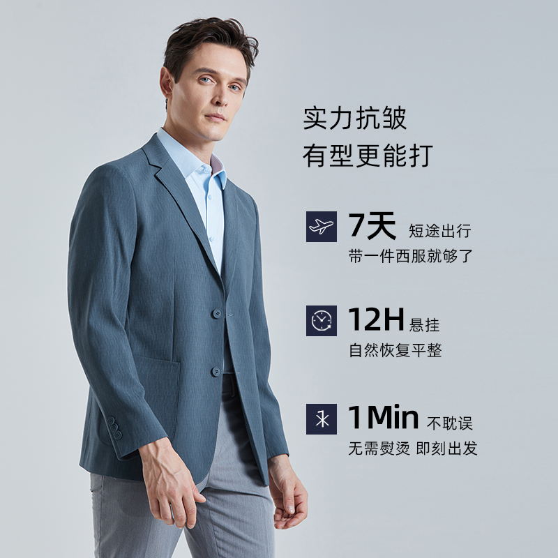 老罗 抗皱西装 新锐一号 树皮纹休闲西服男正装 251B0S513N 秋季 衬衫