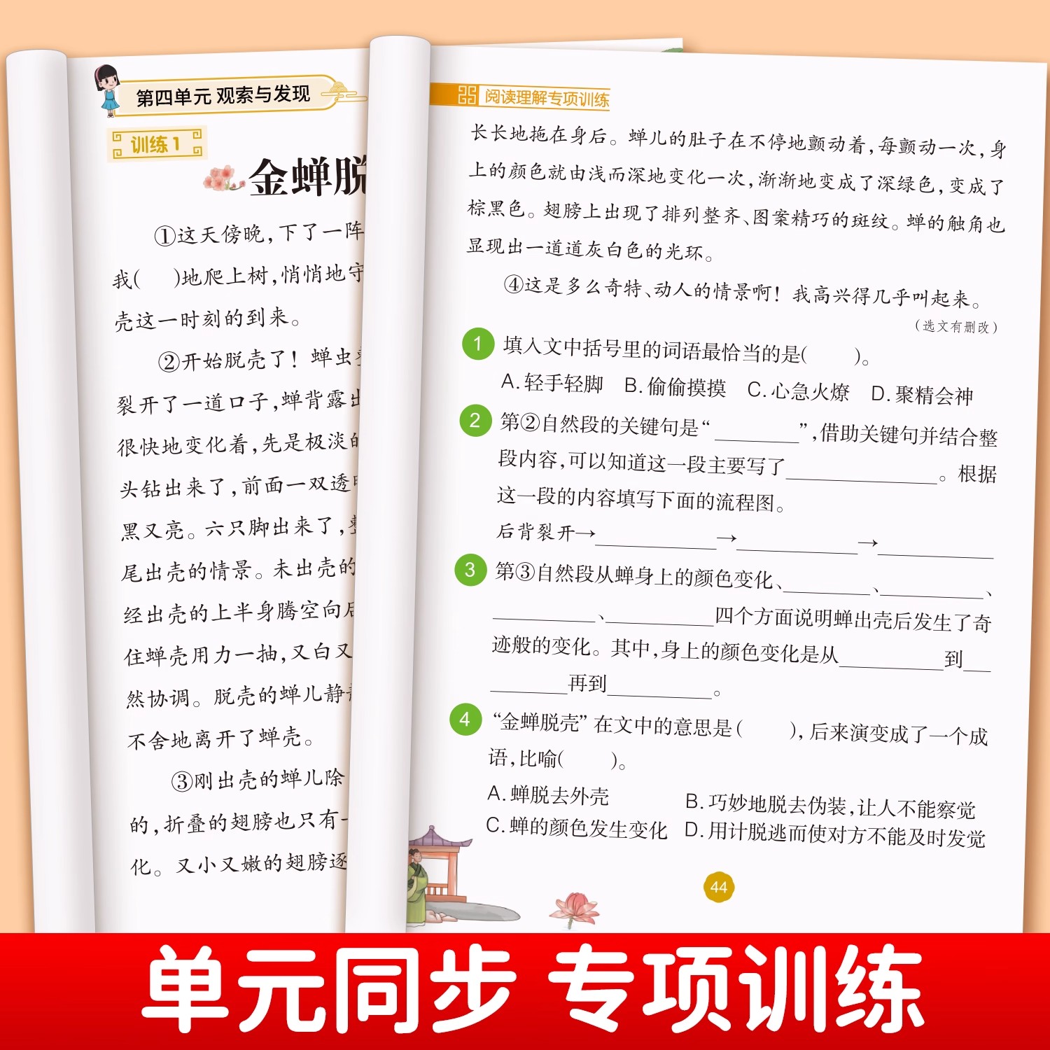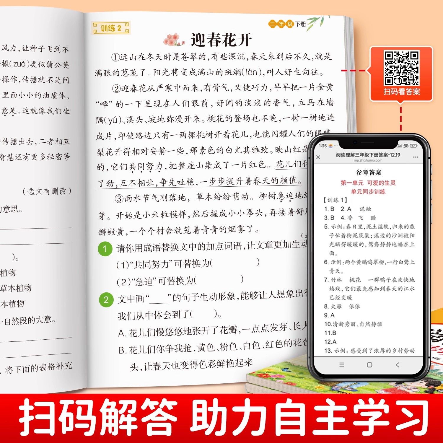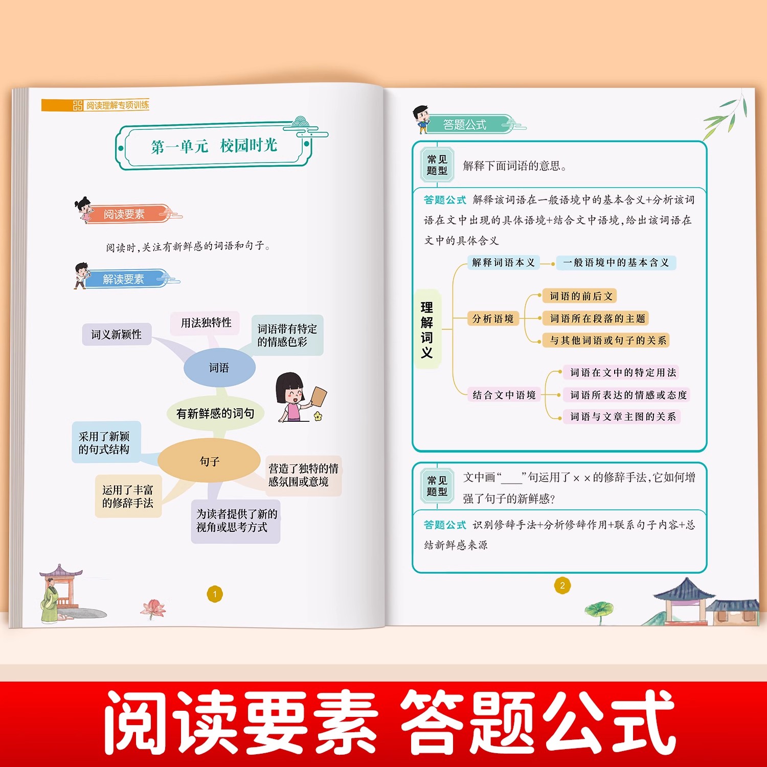 三年级阅读理解专项训练书小学语文四五六年级人教版 法答题技巧每日一练小学生同步练习册 上册下册课内外阅读强化真题100篇公式