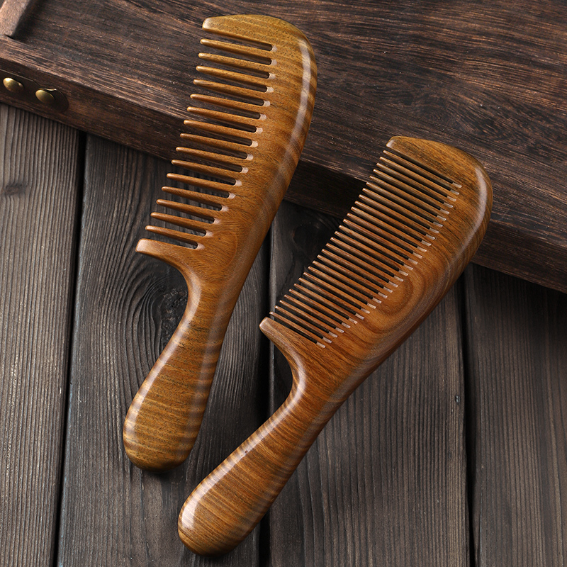 绿檀木梳子檀香木头梳子宽齿木料脱发正品 女士专用长发防 天然男士
