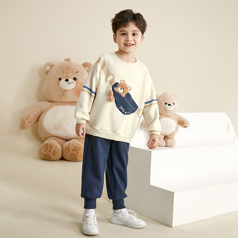 聚热锁温 宝宝秋冬季 男童加绒卫衣套装 男孩帅气时髦童装 衣服 新款