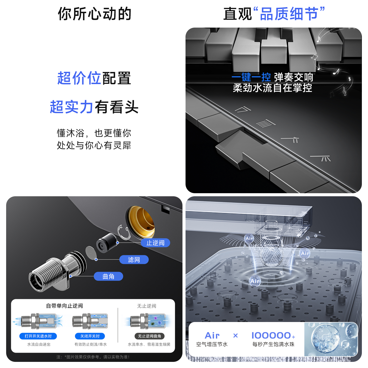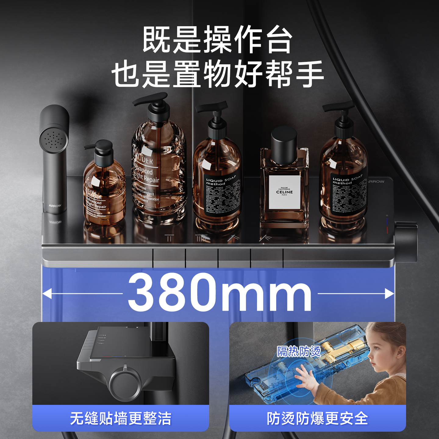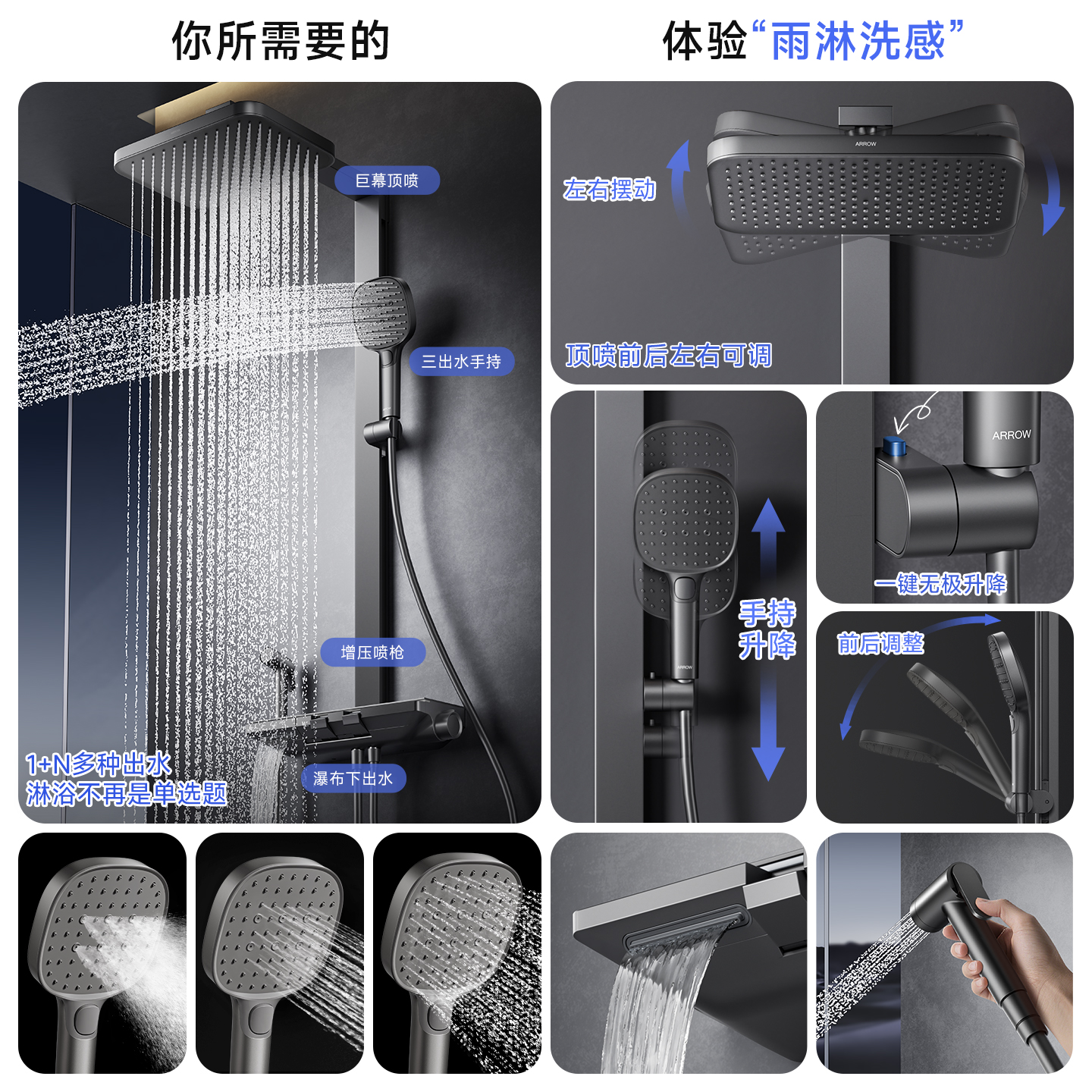 箭牌卫浴枪灰恒温淋浴花洒套装 家用浴室钢琴键增压全铜淋浴器喷头