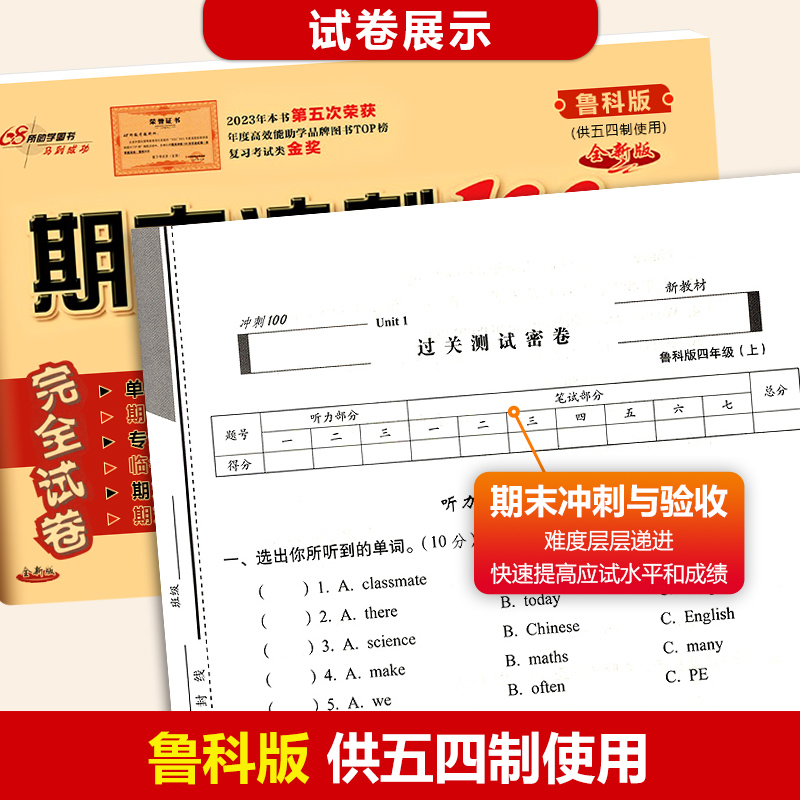 4年级同步54制单元 2024秋新版 期末冲刺100分完全试卷五四制 四年级上册英语供五年制使用 期中专项突破期末冲刺测试卷子68所 鲁科版