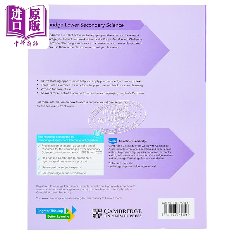 Lower Secondary 中商原版 NEW 8剑桥初中科学练习册八年级初二 Cambridge Workbook 预售 Science