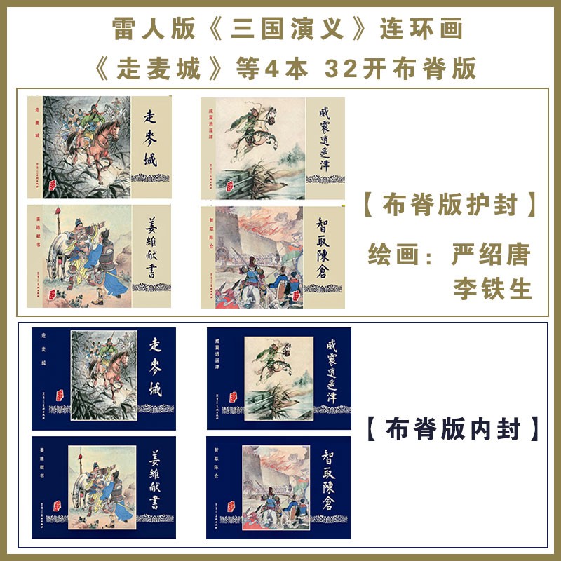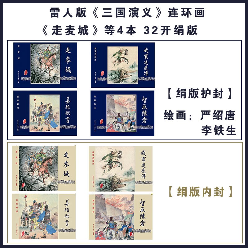 威震逍遥津等4本黑白线描版 雷人版 走麦城 姜维献书 严绍唐等绘 三国演义第7批32开大精