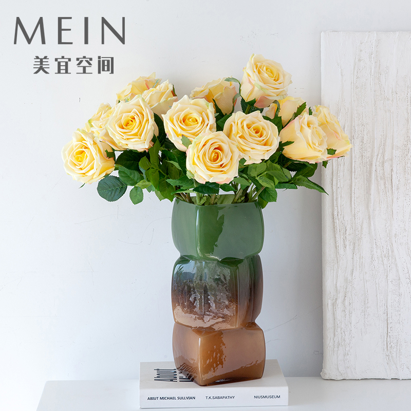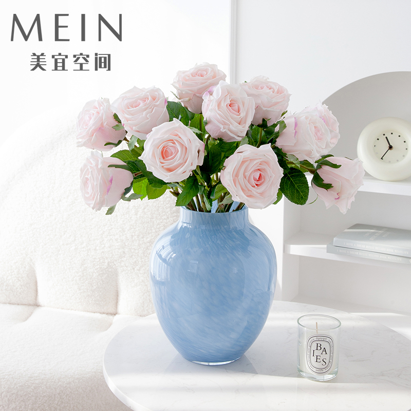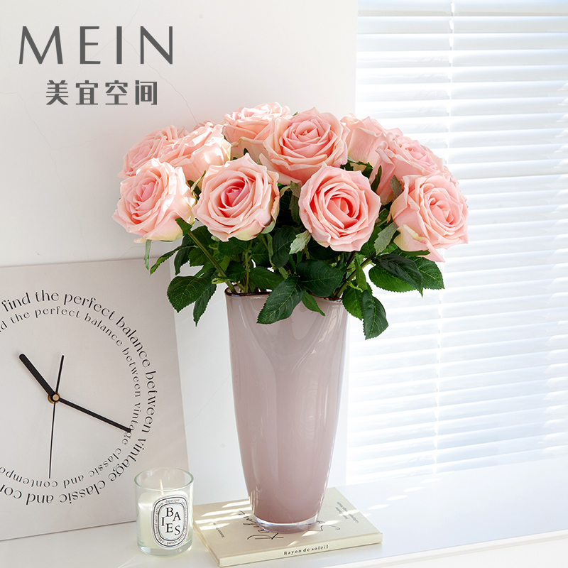 高档逼真保湿 假花客厅摆件餐桌花摆设 感手感玫瑰花仿真花欧洲月季