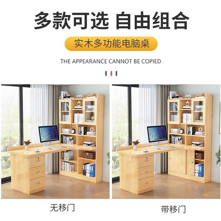 实木转角书桌书架一体组合卧室儿童学习写字桌简约台式 办公电脑桌