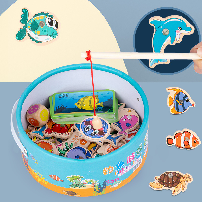 玩具儿童1到3岁早教益智类磁吸磁铁钓鱼竿开发大脑专注力互动鱼类