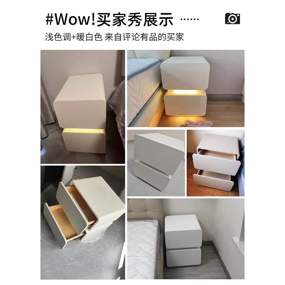 悬浮床头柜奶油风实木带灯极简家用卧室高级感床边储物柜简约现代