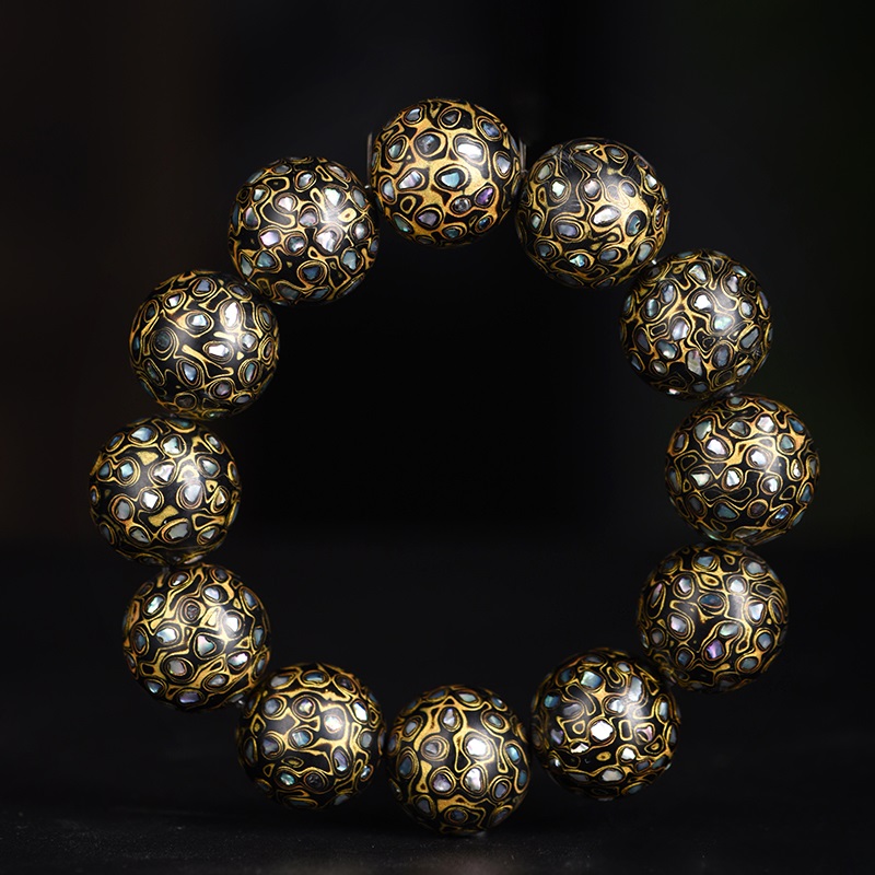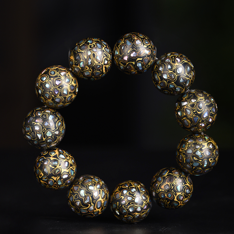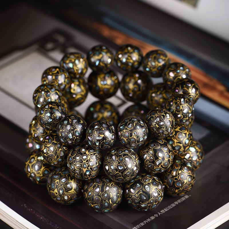 玄同中国大漆黑金螺钿手串手链犀皮螺钿漆器男潮佛珠男女款