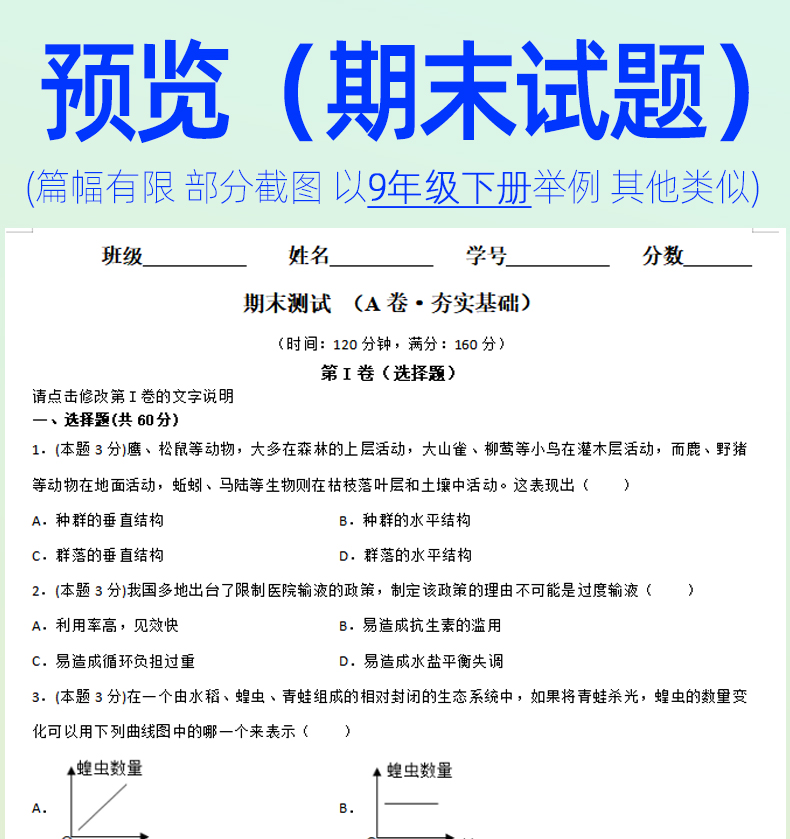 AB卷试题检测期中期末测试电子版 2025新版 七八九年级上册下册浙江初一初二初三课时同步练习题单元 初中科学试卷电子版 资料 浙教版